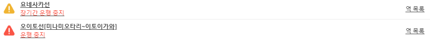 지연 및 운행 중지 정보가 있는 노선만 표시됩니다.