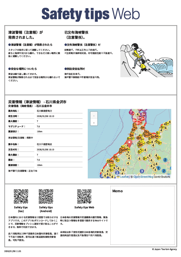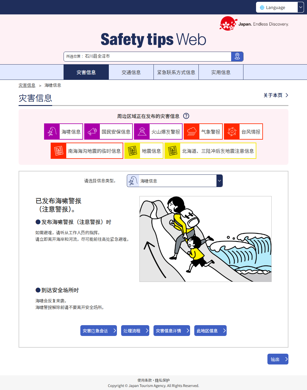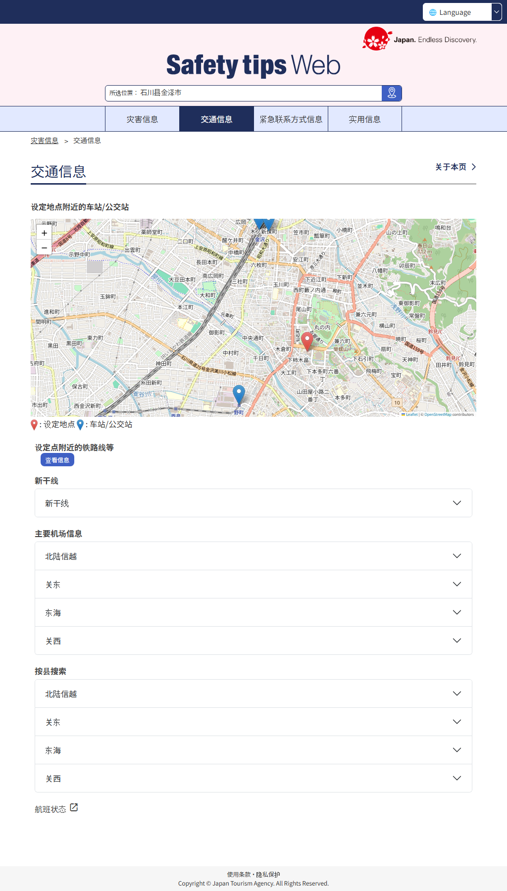 本网站旨在让来访日本的外国游客和旅游服务商能以简单易懂的方式查看并分享灾害和交通相关信息。