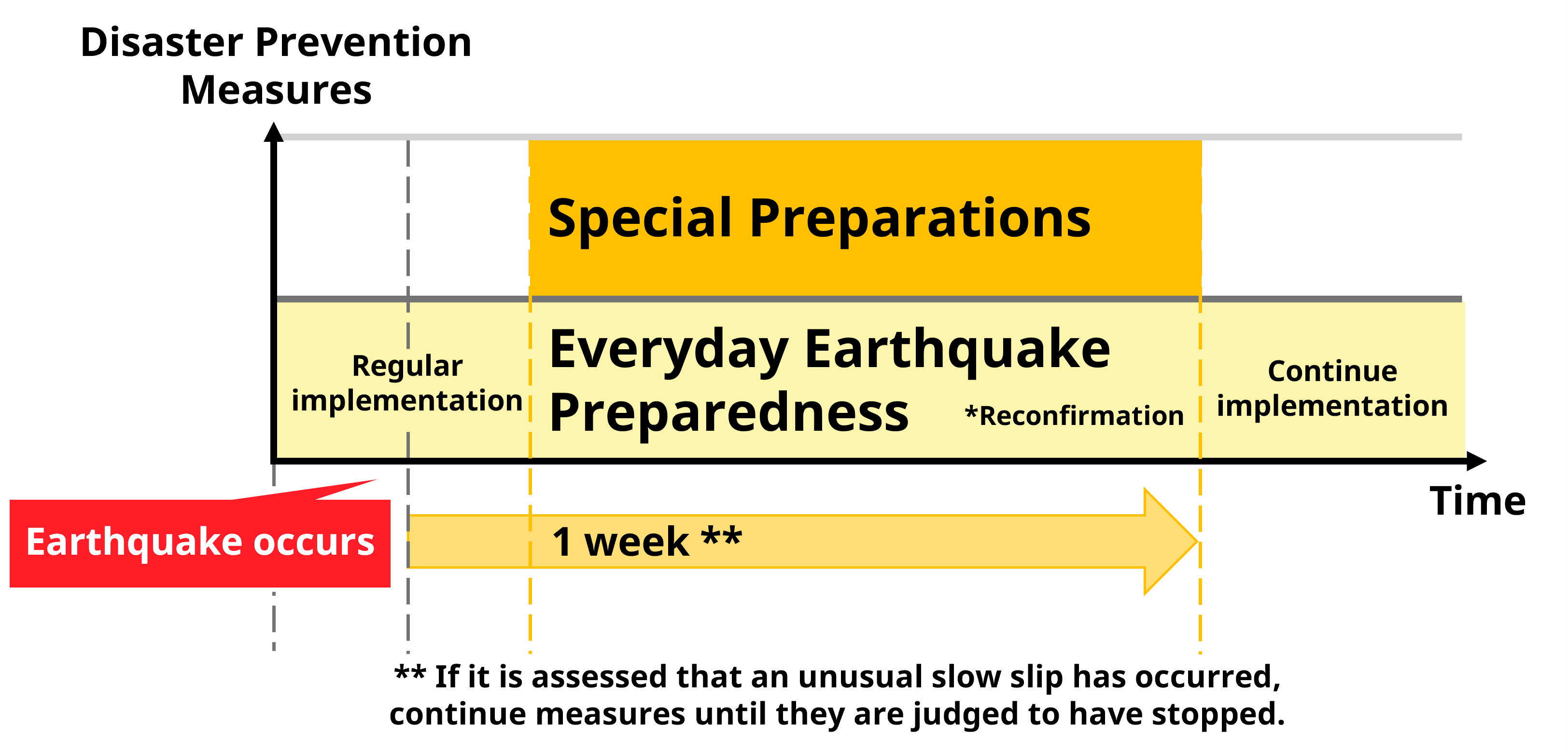 Continue with daily life while making “special preparations” and “reviewing everyday earthquake preparedness.”