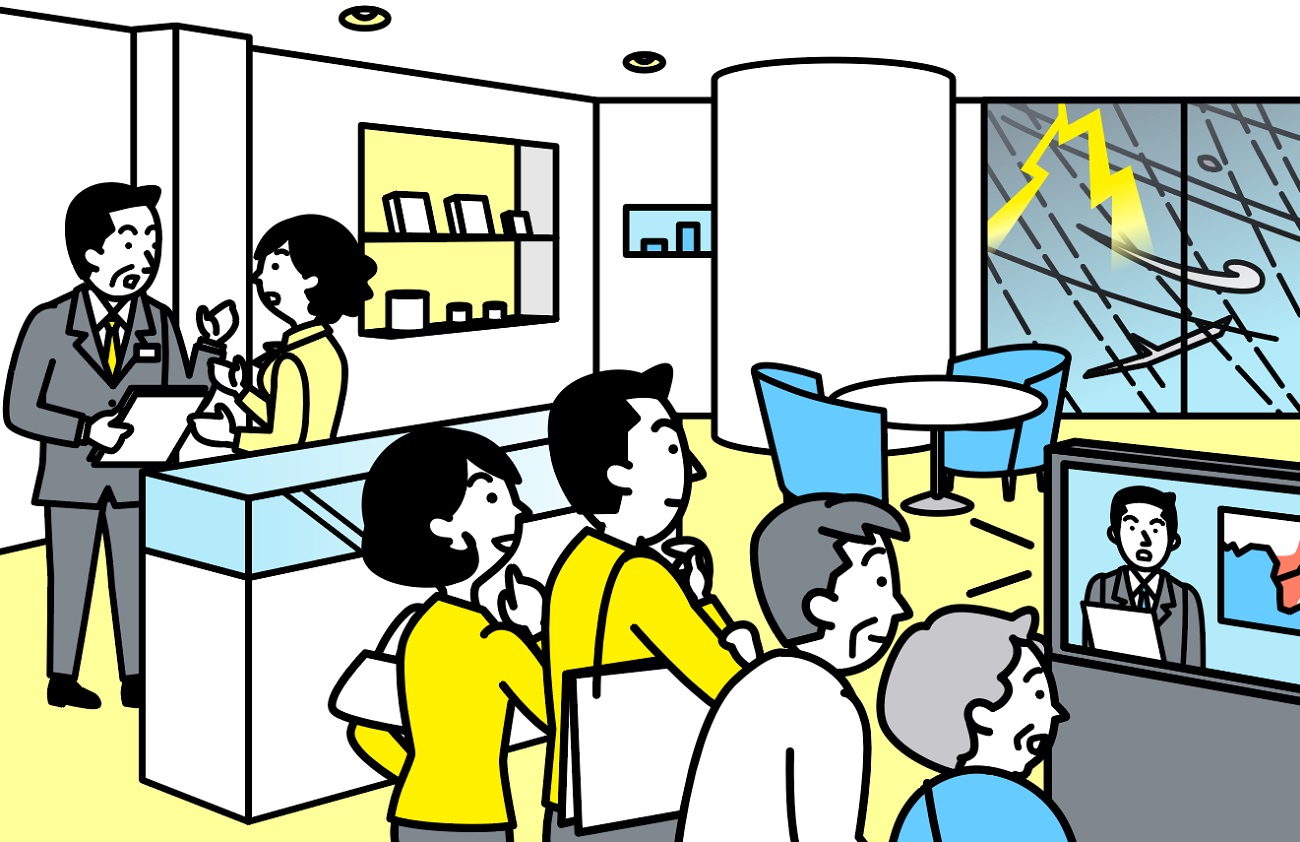 避難が必要な場合は、スタッフの指示に従って避難してください。