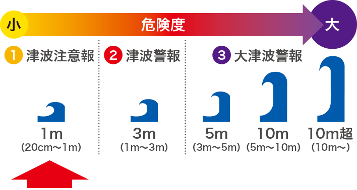 津波は繰り返し襲ってきます。警報が解除されるまで、水辺に近づいてはいけません。
