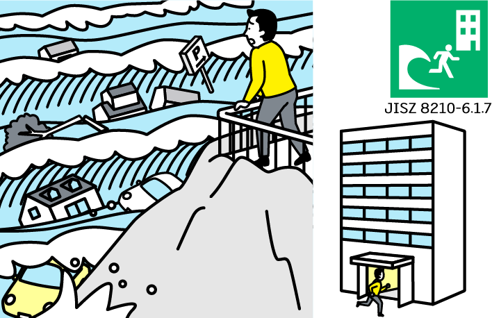 周囲の人の行動を観察し、高台や津波避難ビルに避難します。