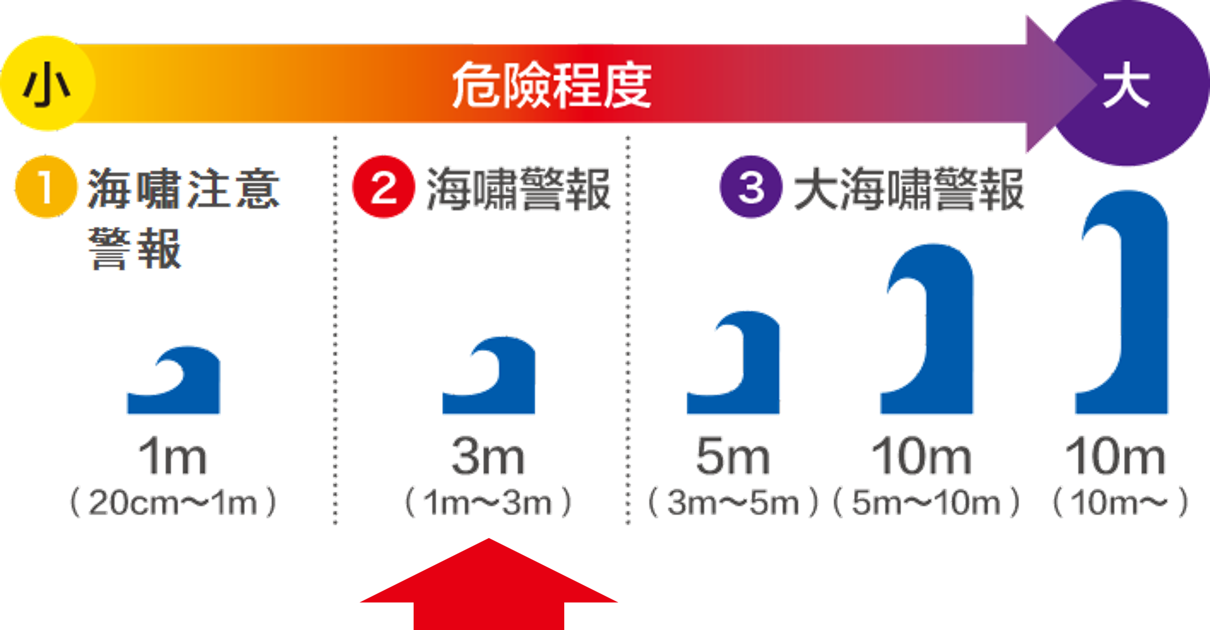 海嘯會反復來襲。在警報解除之前不可接近水邊。