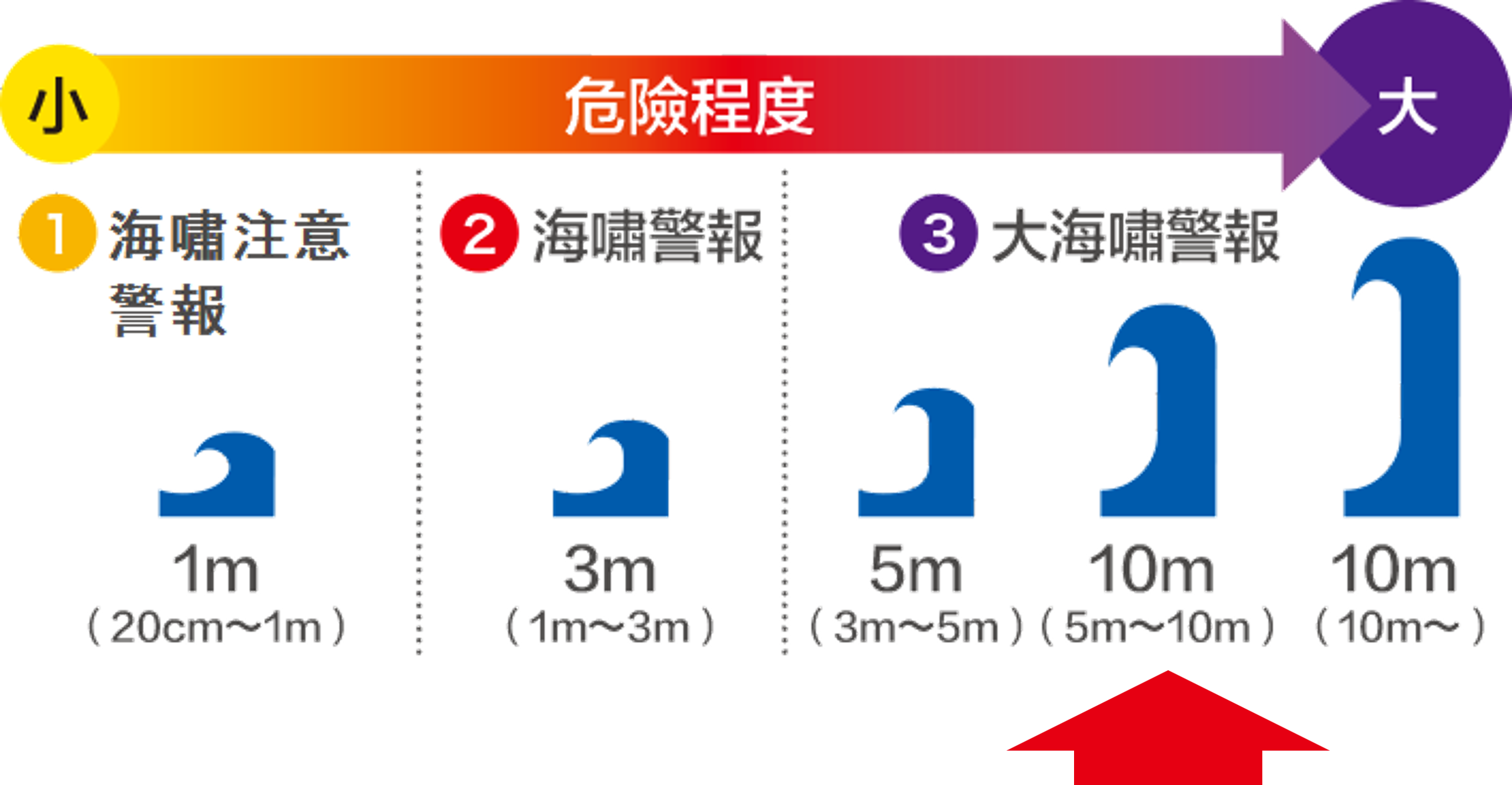 海嘯會反復來襲。在警報解除之前不可接近水邊。