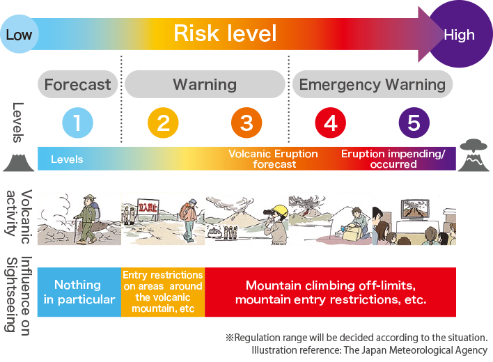 When the meteorological agency announce an volcanic warning, restrictions on entry to the mountain, evacuation orders and advice will be made which shall be followed.