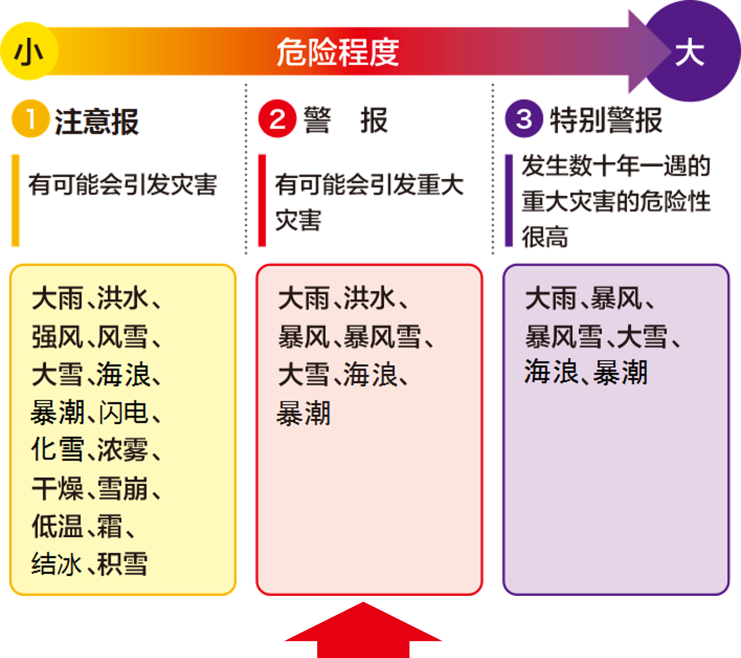 可能发生重大灾害时发布,呼吁相应地区进行警戒。