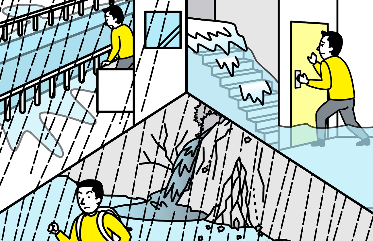 ※숙박시설 등의 상황을 확인한 후, 대피 장소로 대피하거나 외출이 위험할 경우에는 숙박시설의 2층 등 보다 안전한 장소에 그대로 있습니다.