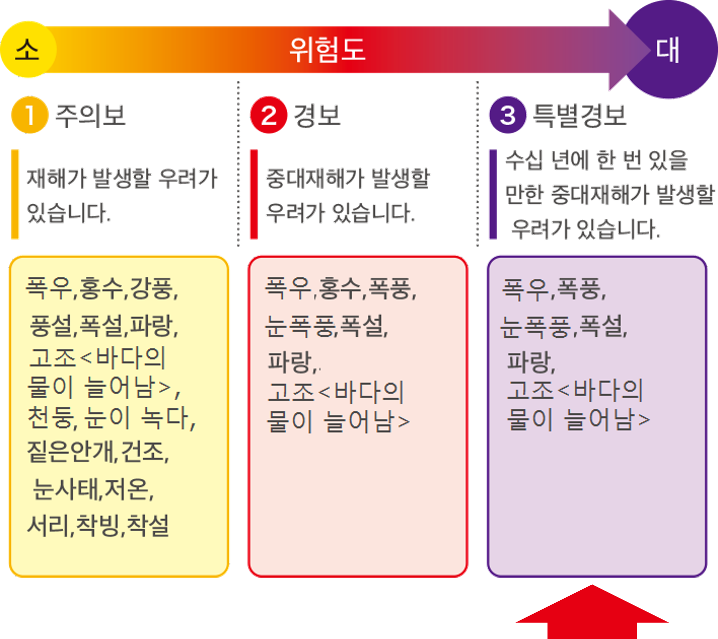경보의 기준을 훨씬 넘어, 수십 년에 한 번밖에 없는 중대한 재난이 일어날 위험성이 높은 경우에 발표됩니다.
